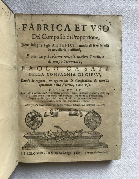 CASATI, Paolo. Fabrica et uso del Compasso di Proportione, dove insegna à gli artefici il modo di fare in esso le necessarie divisioni, e con varij Problemi usuali mostra l'utilità di questo stromento … accresciuta notabilmente in questa Seconda Editione dal medesimo Autore.