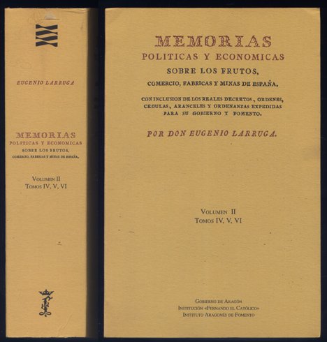 Zaragoza, 1995. 4to.; VIII-320 pp. y un estado plegado + VII-322 pp. + VIIII-336 pp. Edición facsímil de la impresa en Madrid, 1787 - 1800. Cubiertas originales.
