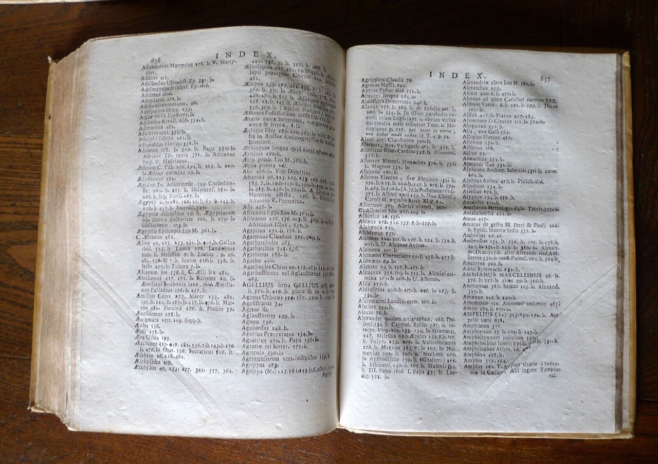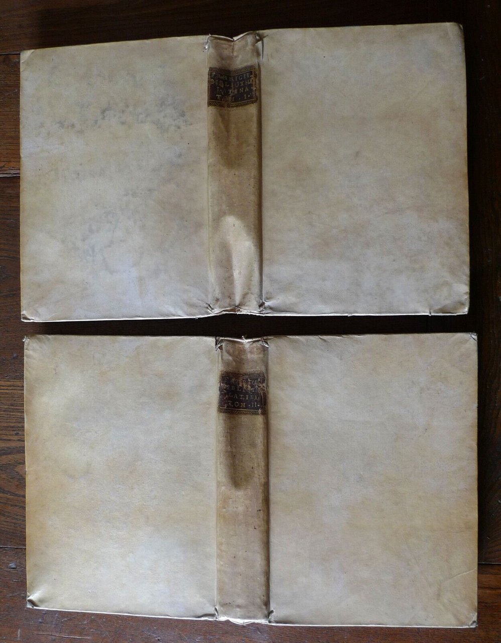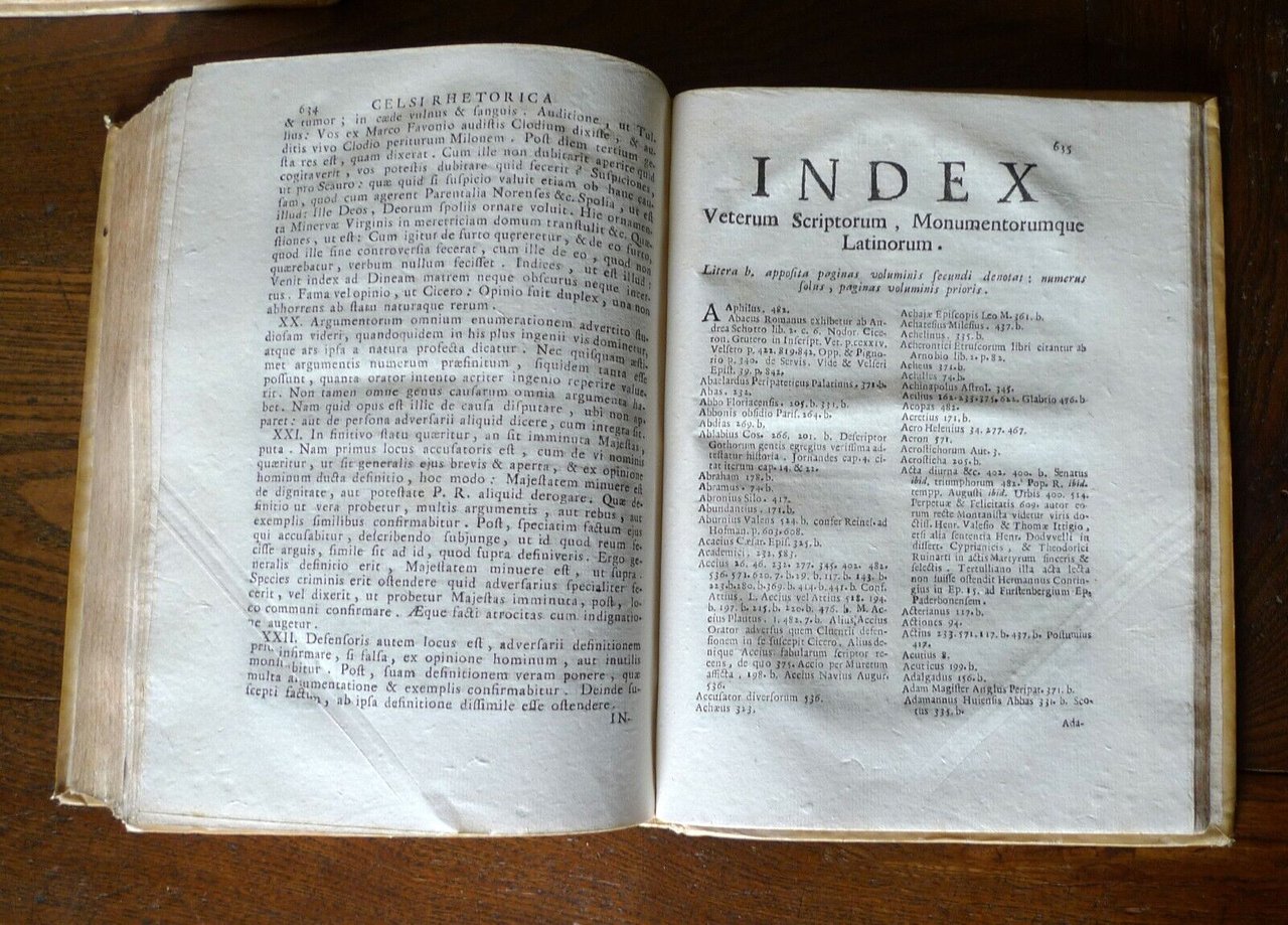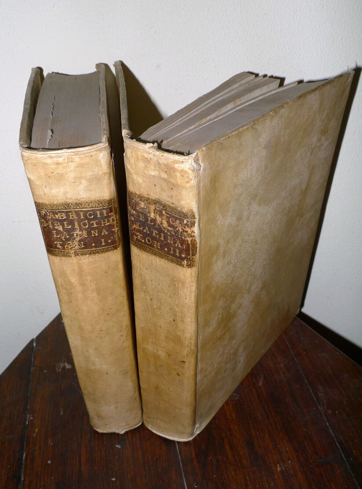 [Johann Albert Fabricius]JO. ALBERTI FABRICII BIBLIOTHECA LATINA SIVE NOTITIA AUCTORUM VETERUM LATINORUM Quorumcumque scripta ad nos pervenerunt distributa in libros IV. Supplementis quae antea sejunctim excusa maximo Lectorum incommodo legebantur, suis quibusque locis nunc primum insertis.- TOMUS PRIMUS,Ad cuius calcem accedunt Epistolae Q. Curtii nomineA. 1500 Regii Lepidi Vulgatae- TOMUS SECUNDUS, Ad cuius calcem accedunt suppleta inges lacuna aliquot paginarum in scholiis Eustathii ad Dionysium Periegetem, & Aur. Cornelii Celsi Rhetorica ex unica Sixti Popmae editione.[4 LIBRI RILEGATI IN 2 TOMI,OPERA COMPLETA]Venetiis, 1728, Apud Sebastianum Coleti,copertina rigida, rilegatura coeva in piena pergamena,24x17,5 cm., pp.[16],676,[2];[6],687,[2],tagli a spruzzo,testo in latino,peso: kg.2,1
