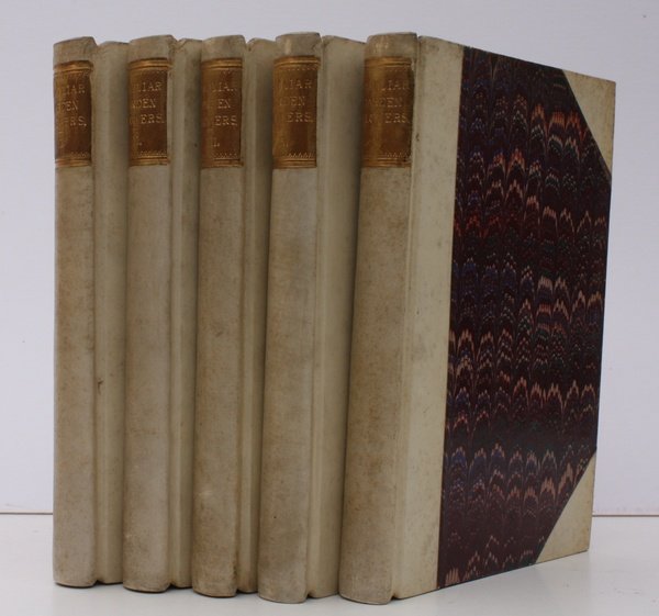 5 vols., 8vo., with coloured frontispieces, fine coloured plates and line-illustrations in the text; strongly and elegantly bound in half vellum, marbled boards, backs with tan leather labels lettered and ruled in gilt, red sprinkled edges, marbled endpapers, a most attractive set.