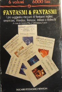 Fantasmi e fantasmi, a cura di Gianni Pilo e Sebastiano Fusco, Tascabili Economici Newton, Roma 1994, 6 voll., pp. 554, cm 20, br. ed. con cofanetto. Il cofanetto contiene i voll. 179-184 della collana Cento pagine mille lire. Sul cofanetto: I più suggestivi racconti di fantasmi inglesi, irlandesi, francesi, italiani e tedeschi. Vol. n. 179: Walpole et. al, Fantasmi inglesi, a cura di G. Pilo e S. Fusco. Vol. n. 180: James, Fantasmi americani, a cura di G. Pilo e S. Fusco. Vol. n. 181: Le Fanu et al., Fantasmi irlandesi, a cura di G. Pilo e S. Fusco. Vol. n. 182: Gautier et al., Fantasmi francesi, a cura di G. Pilo e S. Fusco. Vol. n. 183: Capuana et al., Fantasmi italiani, a cura di G. Pilo e S. Fusco. Vol. n. 184: Hoffmann, Meyrink, fantasmi tedeschi, a cura di G. Pilo e S. Fusco. Indice singoli volumi. Vol. n. 179: G. Pilo, S. Fusco, La ghost story britannica – Hugh Walpole, La vecchia, Vernon Lee, Il Signore delle Mosche – Oliver Onions, La nave fantasma – Montague Rhodes James, Oh, fischia ed io verrò – Francis Marion Crawford, La cuccetta superiore. Vol. n. 180: G. Pilo, S. Fusco, La ghost story negli Stati Uniti – Henry James, L’incontro – Harold Lawlor, Il richiamo – Mary Freeman, Fantasmi – Dorothy Quick, Villa De Quisce – Ambrose Bierce, Casa Manton. Vol. n. 181: Joseph Sheridan Le Fanu, Il fantasma e il conciaossa – Id., Il fantasma della signora Crowl – Fitz James O’Brien, Che cos’era? – Id., La stanza perduta – Bram Stoker, Capelli d’oro – Id., Lo sposalizio. Vol. n. 182: G. Pilo e S. Fusco, La realtà e altrove – Théophile Gautier, Il piede della mummia – Charles Nodier, La valle dell’uomo morto – Prosper Mérimée, La Venere d’Ille – Guy de Maupassant, Chi lo sa? – Émile Zola, La casa degli spettri – T. Gautier, La caffettiera – P. Mérimée, La visione di Carlo XI. Vol. n. 183: G. Pilo, S. Fusco, I racconti di fantasmi: tematiche e linee generali – Luigi Capuana, Un vampiro – Luigi Gualdo, La canzone di Weber – Amilcare Lauria, Notizie dell’altro mondo – Luigi Pirandello, La casa del Granella – Iginio Tarchetti, La leggenda del Castello Nero – Angelo Mazzarese, Spettri. Vol. n. 184: G. Pilo, S. Fusco, I Tedeschi e il racconto dei fantasmi – Erns Theodor Amadeus Hoffmann, L’ospite misterioso – Gustav Meyrink, La seduta spiritica – E. T. A. Hoffmann, Una storia di fantasmi – G. Meyrink, Le stelle dell’Aldilà – E. T. A. Hoffmann, Il violino di Cremona – G. Meyrink, Chitrakarma. Perfetti.