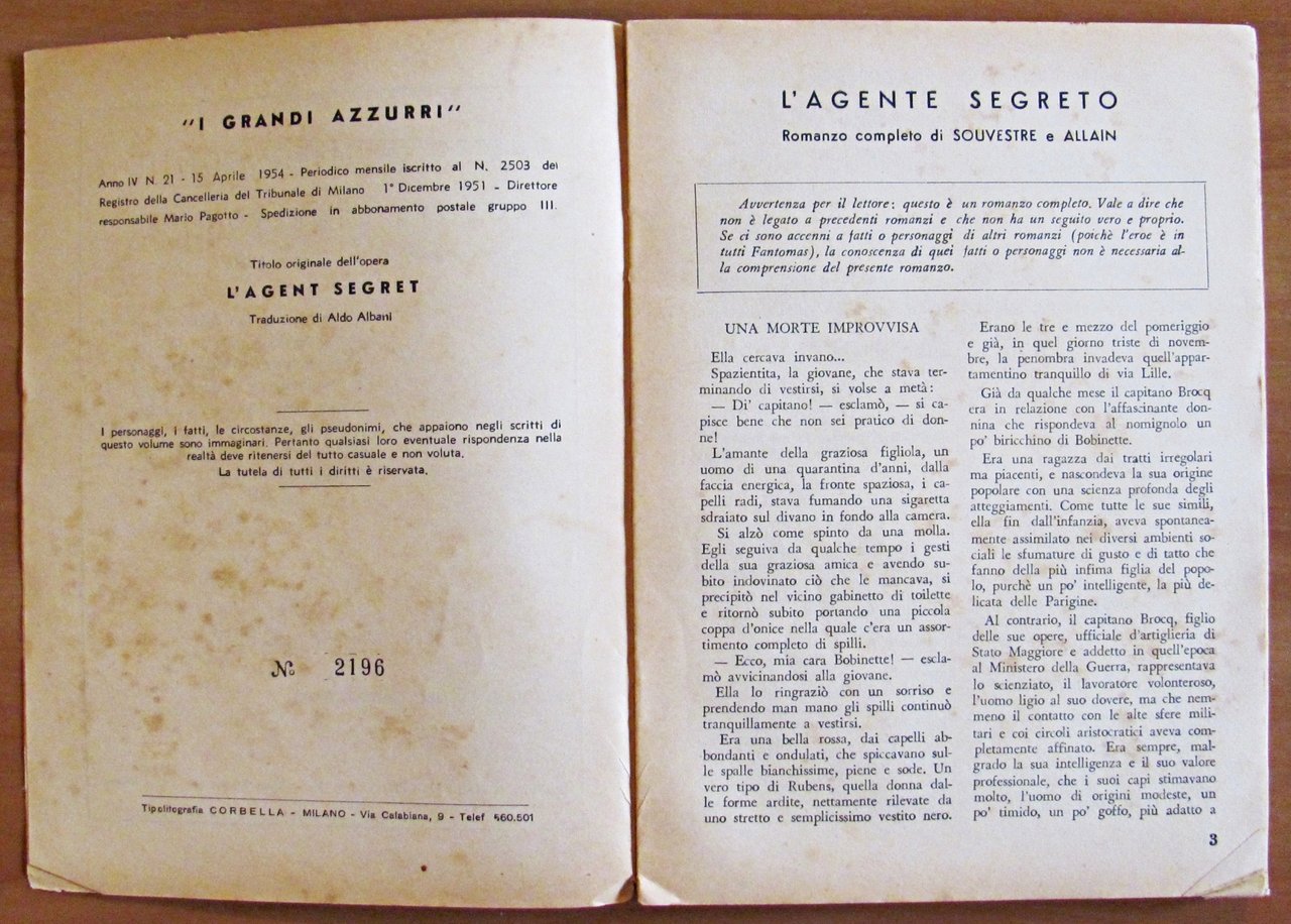 FANTOMAS - L'AGENTE SEGRETO - Collana I Grandi Azzurri N.4, 1954