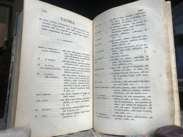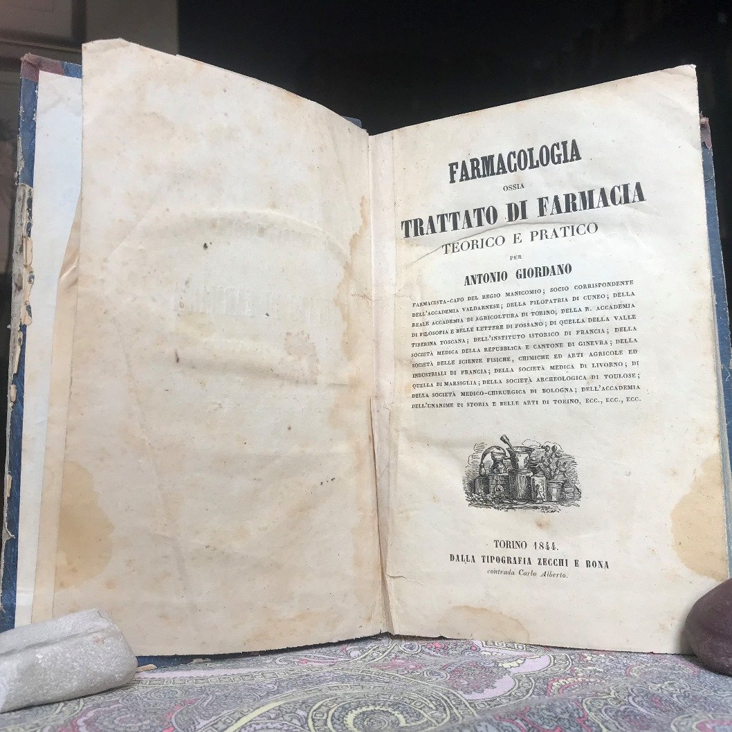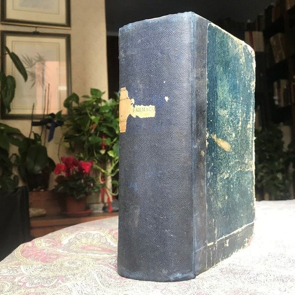 Volume in 8 grande legato in mezza tela, sguardie, occhiello, frontespizio, XV, 1075 pp. Importante, corposo ed esauriente prontuario farmacologico nella sua seconda edizione ampiamente rivista ed accresciuta dall'Autore. In pi che bello stato, poche insignificanti mende d'uso particolarmente insistenti alle ultime due-tre carte. Eccellente, non comune