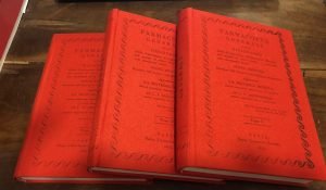 VT- Elegante fotocopia rilegata in tutta tela rossa dei 3 volumi del Brugnatelli con moltissime ricette. Mis. 195x140