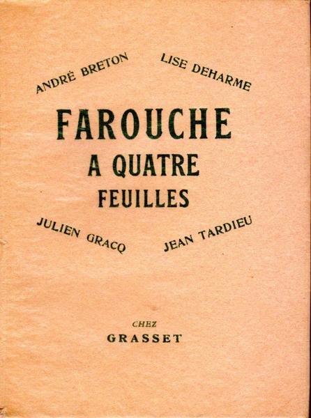 Farouche a quatre feuilles, prima edizione 1954, pp. 140, formato 14,5 x 19.<BR>Copertina morbida di colore arancione chiaro con titoli in verde al piatto anteriore. presente sovraccoperta protettiva trasparente.Tiratura in 1300 copie numerate. Nostra copia n. 594.<BR>Ottime condizioni.<BR><BR>