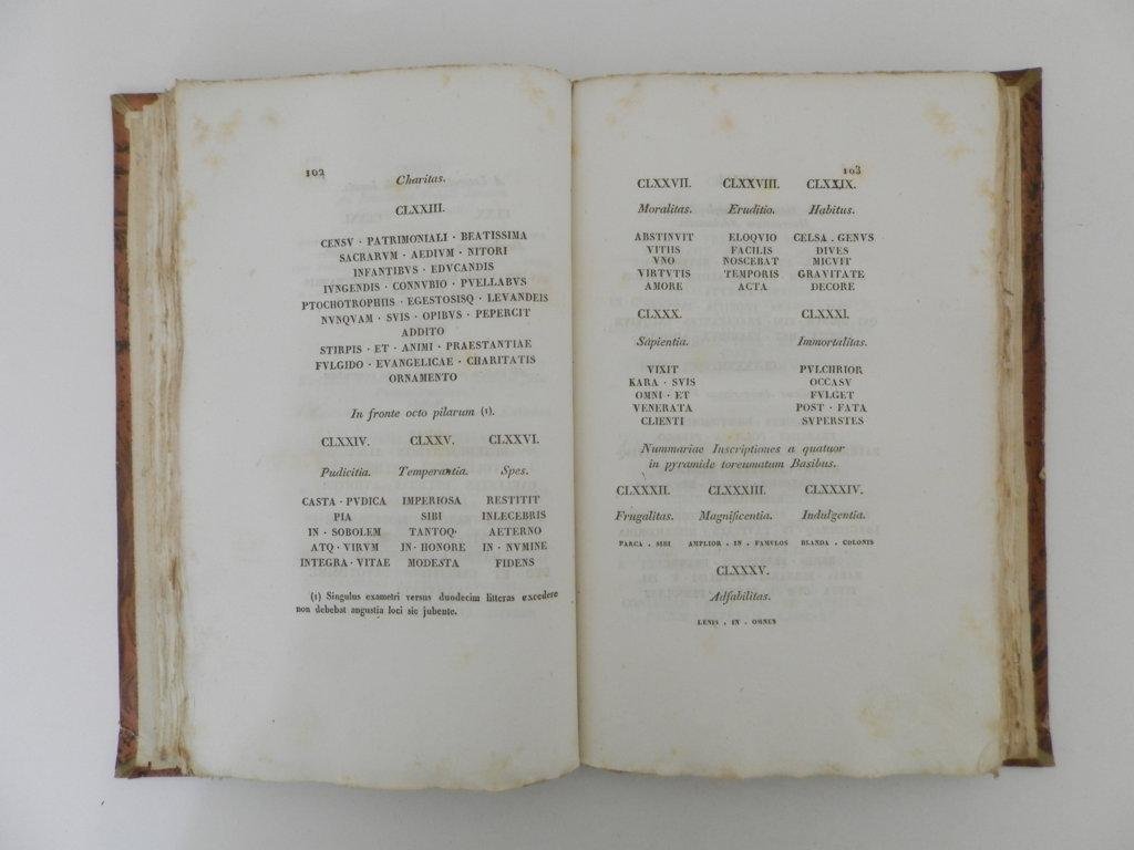 8°, pp. 240; rilegatura editoriale, titolo in oro al dorso, piatti marmorizzati. Elenco di iscrizioni commentate in latino. Esemplare con barbe, molto buono nell'assieme. L'autore originario di Pavia, fu predicatore domenicano, visse nel convento annesso a S.Maria delle Grazie. Fu ostile alla dominazione francese tanto da subire anche un breve periodo di prigionia. Dopo la Restaurazione fu nominato epigrafista del Comune di Milano.. *** TUTTI I NOSTRI LIBRI SONO VISIBILI PREVIO CONTATTO MAIL O TELEFONO NELLA NUOVA SEDE DI MILANO: LIBRERIA COSMOPOLIS, VIA JOMMELLI, 22. ***