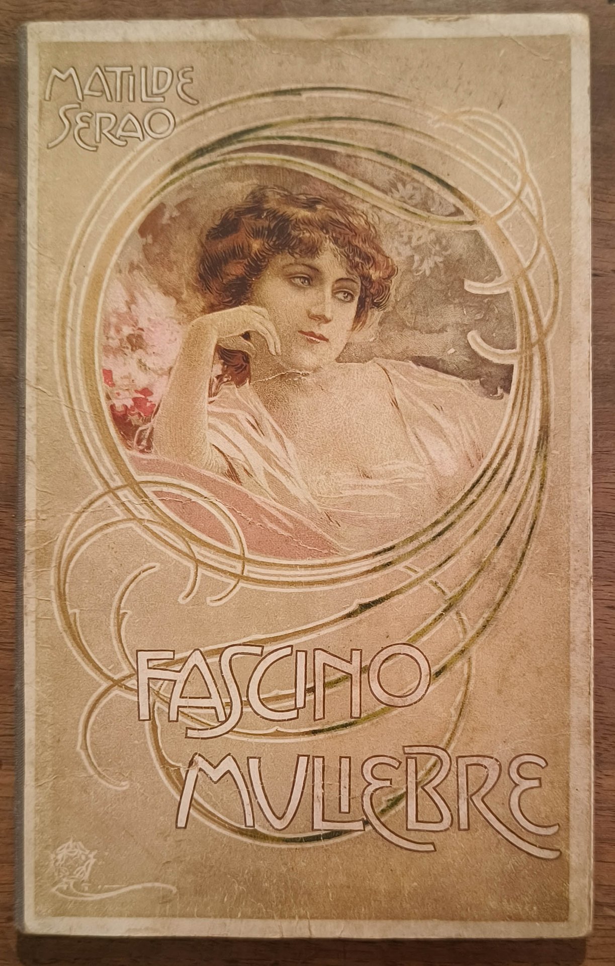 Fascino muliebre, Bergamo, Arti Grafiche, s.d. 1901. Prima edizione, fuori commercio. Cm 20. Pp. 80. Brossura editoriale illustrata. Copertina sciupata, qualche macchia e piccolo strappo. Opuscolo pubblicitario della società di prodotti chimico-farmaceutico-igienici A. Bertelli & c.