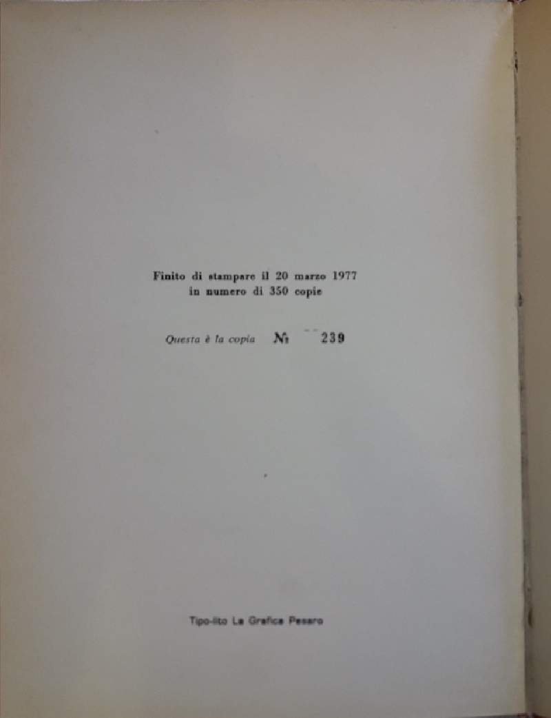In 8', leg. in similpelle con tit. in oro al piatto e al dorso, ampia dedica dell'A. al frontespizio(foto), pp. 126, copia numerata 239/350, lievi segni d'uso alla cop., interno in buono stato, margini leggermente ingialliti. ***Due to bureaucratic reasons, books dated over 70 years old cannot be immediately exported, please contact us before placing the order.***