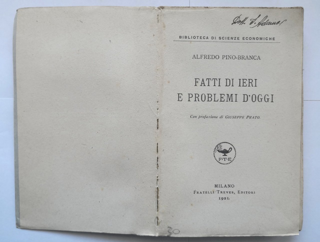 FATTI DI IERI E PROBLEMI D'OGGI di Alfredo Pino-Branca 1921 Fratelli Treves