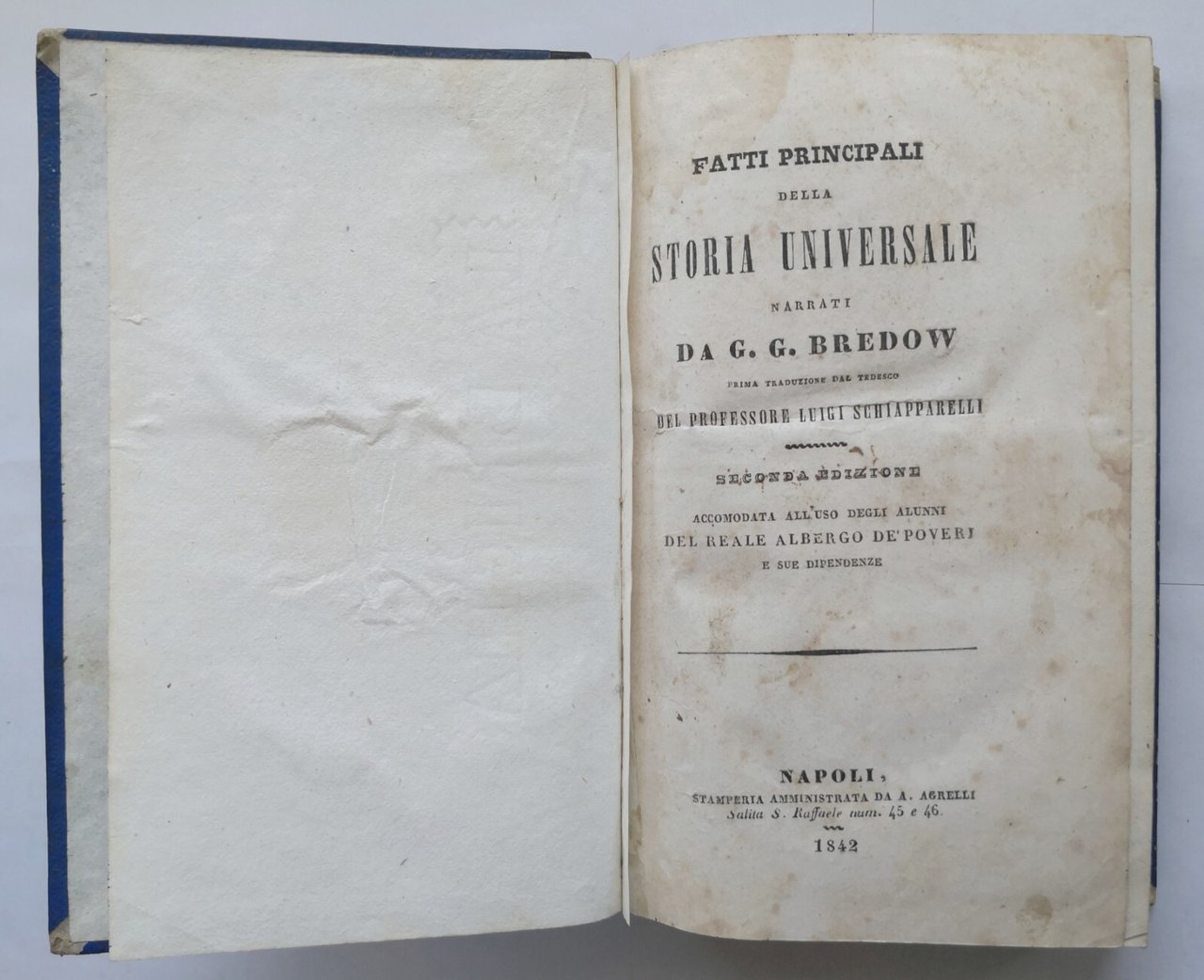 FATTI PRINCIPALI DELLA STORIA UNIVERSALE di G.G. Bredov. Prima traduzione dal tedesco del professore Luigi Schiapparelli.