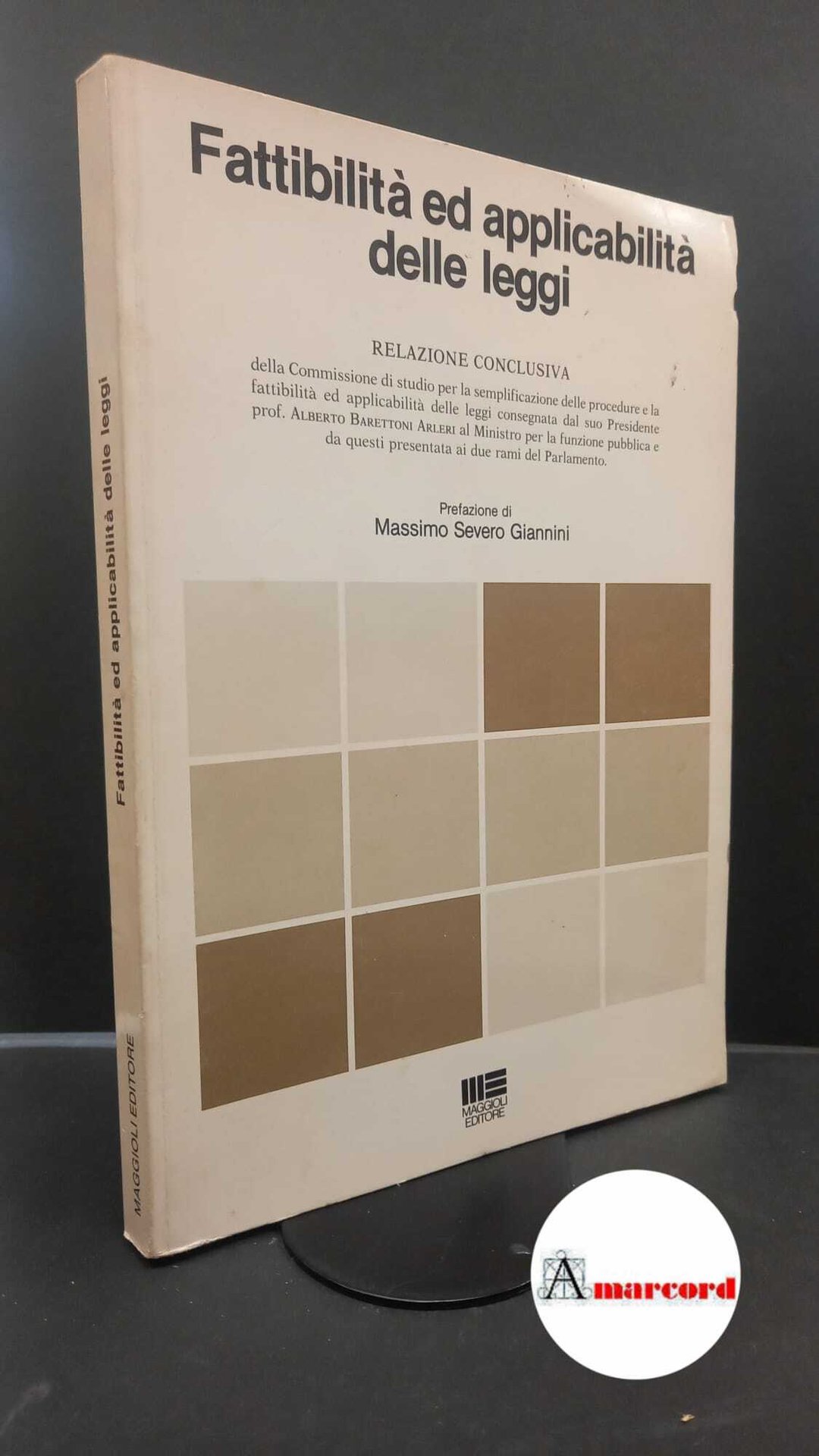 1071 aa.vv. Fattibilità ed applicabilità delle leggi : relazione conclusiva della Commissione di studio per la semplificazione delle procedure e la fattibilita ed applicabilita delle leggi consegnata dal suo Presidente prof. Alberto Barettoni Arleri al Ministro per la Funzione pubblica e da questi presentata ai due rami del Parlamento. Rimini Maggioli, 1983. , Maggioli 1983 italiano, in ottavo 210 12651