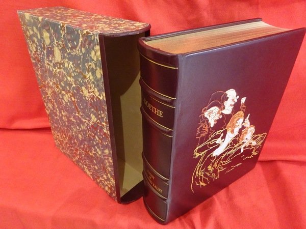Paris, Nouvelle Librairie de France, 1984; in-4, 360 pp., reliure d'éditeur plein cuir, mosaïqué du décor d'un dessin de Weisbuch, tête dorée, sous emboîtage en papier marbré. Édition non numérotée, sur papier vélin pur chiffon d'Arches. Traduction de Gérard de Nerval. Illustrations par Claude Weisbuch (lithographies et dessins originaux). Très bon état.