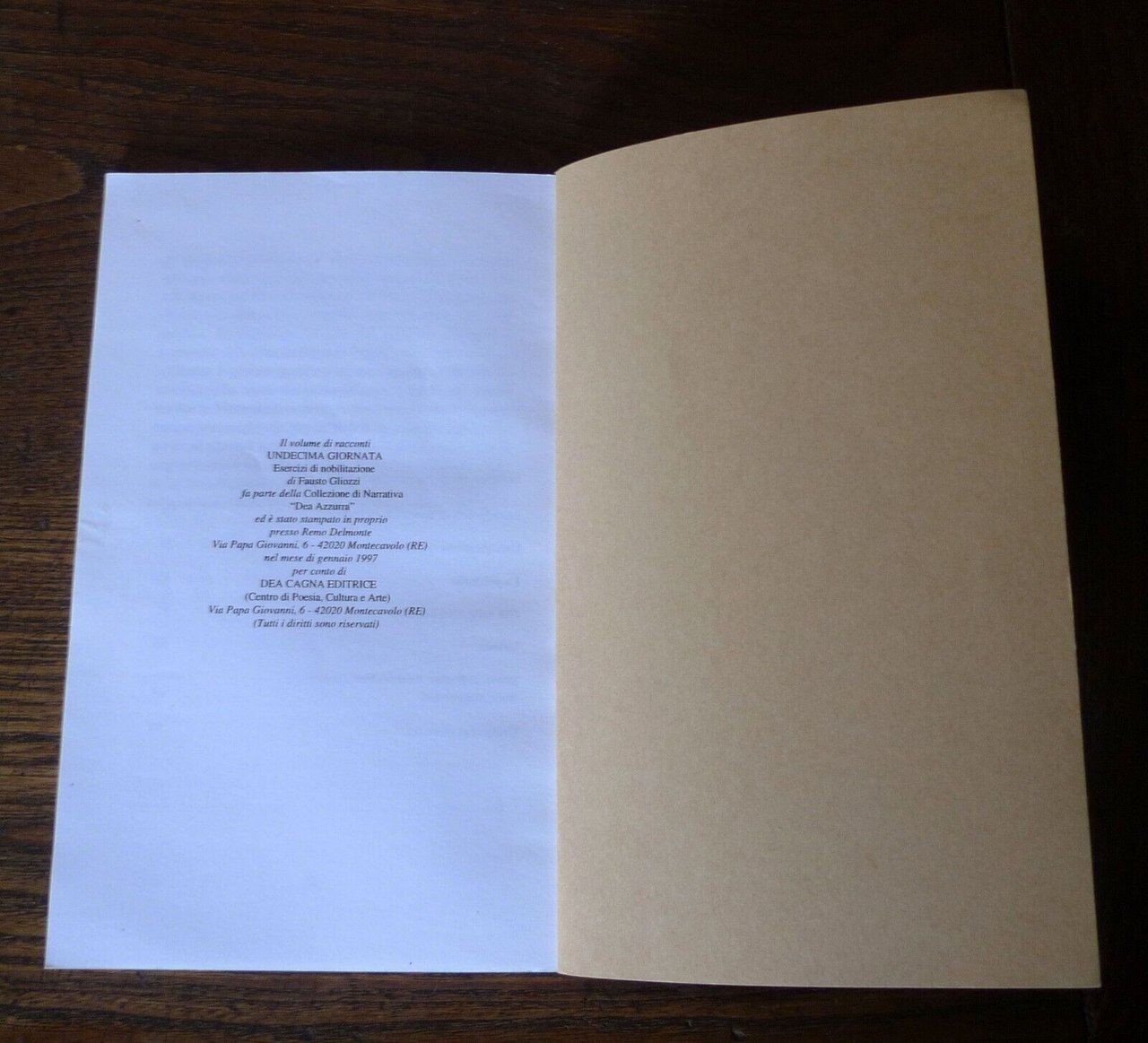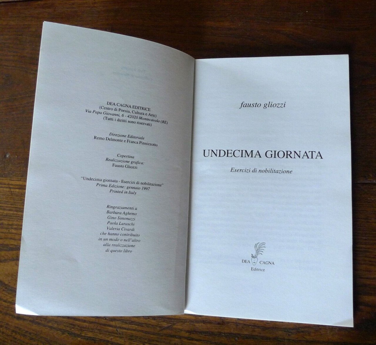 Fausto Gliozzi,UNDECIMA GIORNATA.Esercizi di nobilitazione.DEA CAGNA Editrice, Montecavolo (RE) 1997,brossura, 21x13,5 cm., pp.86,collezione di narrativa DEA AZZURRA,DEDICA AUTOGRAFA DELL'AUTOREalla prima pagina bianca,peso: g.200