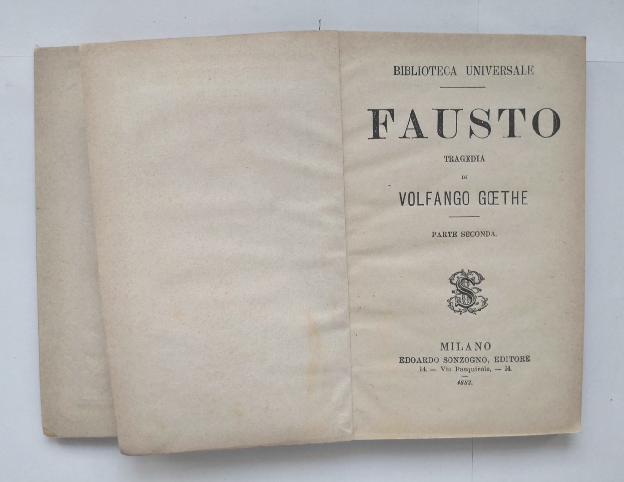 FAUSTO tragedia di Volfango Goethe parte II 1883 Sonzogno libro antico Wolfgang