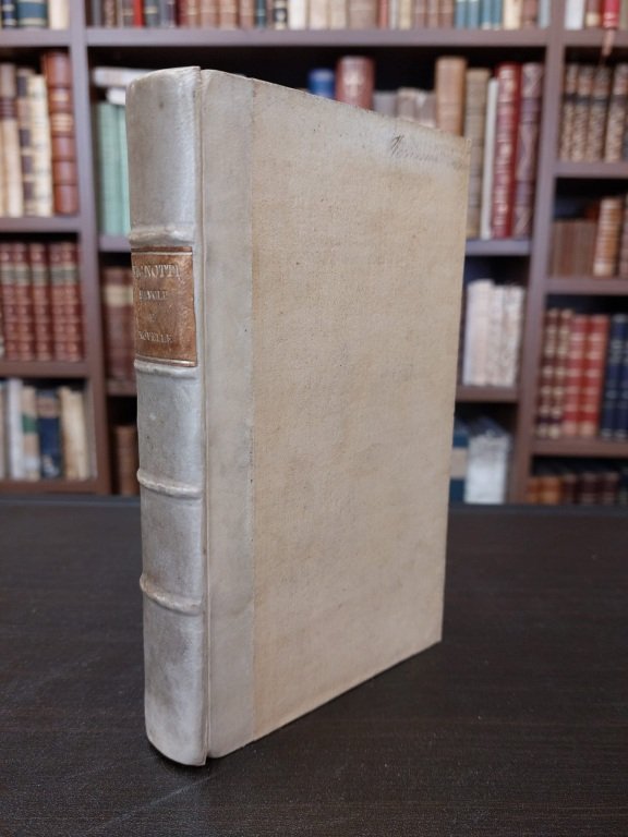 <span style="font-style: normal;">2 tomi in 1 in-16° (cm. 17,4), legatura coeva in mezza pergamena, dorso a nervi con titolo in oro su tassello nocciola; pp. 204, 191 [1b] in carta azzurrina, barbe, in stato molto buono (lievissime e sporadiche fioriture). Piccola figura musicante incisa al frontespizio. Sesta edizione «</span><i>con aggiunte e correzioni</i><span style="font-style: normal; font-size: 13.3333px;">». Ottimo esemplare. (NA2)</span>