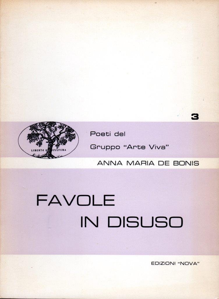 Favole in disuso, prima edizione ottobre 1980, pp. 79, formato 15,5 x 21.<BR>Copertina morbida illustrata con titoli in nero al piatto anteriore e sul dorso. All'interno presenti alcune tavole illustrate in b/n. In prima pagina presente Dedica dell'autrice. <BR>Ottime condizioni. <BR>