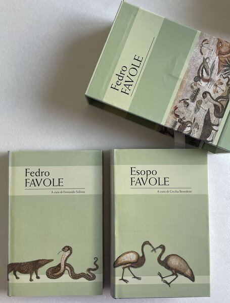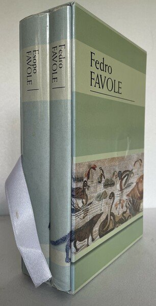 Due volumi. 21 x 14 cm. XXXV, 394; XXXIII, 194 p. Cartonati con sovraccoperta illustrata completi di unico cofanetto editoriale in cartone illustrato. Volumi in ottimo stato. Prima edizione. Esopo a cura di Cecilia Benedetti, Fedro a cura di Fernando Solinas