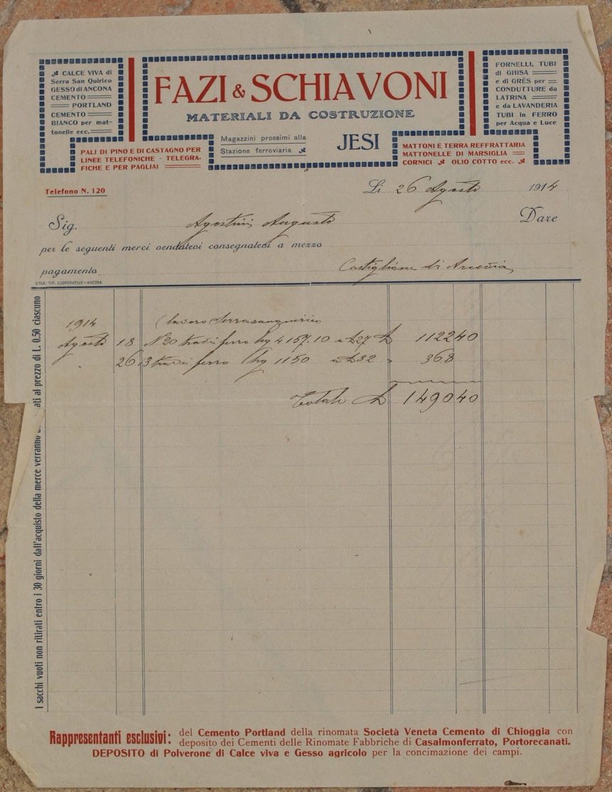 FAZI E SCHIAVONI MATERIALI DA COSTRUZIONE JESI 26 AGOSTO 1914