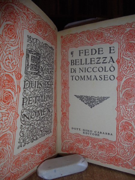 Niccolò, Tommaseo. Lanciano, Dott. Gino Carabba, 1919. Fede e Bellezza. In-16°, m. tela edit. con fregi e titolo in oro al dorso. 207 pp. Ben conservato. Neg. mob. 9