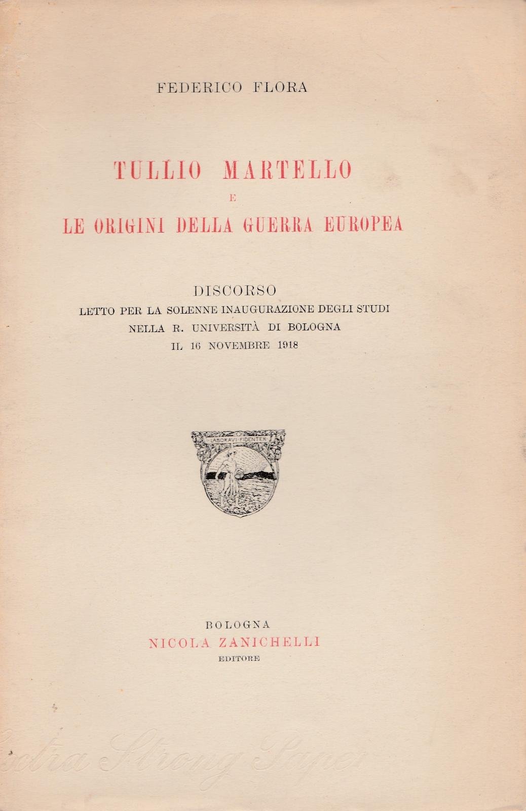 FEDERICO FLORA TULLIO MARTELLO E LE ORIGINI DELLA GUERRA EUROPEA DISCORSO PER LA SOLENNE INAUGURAZIONE DEGLI STUDINELLA R. UNIVERSITA' DI BOLOGNAIL 16 NOVEMBRE 1918BOLOGNA 1918 ZANICHELLI L4382 COPERTINA MORBIDA EDITORIALE INTERNO IN BUONO STATO N. PAG. 20 CM. 24,3 X 17