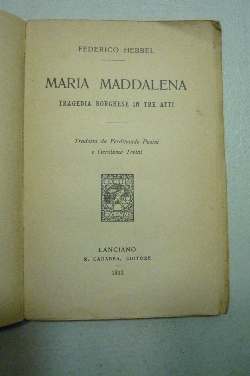 Federico Hebbel,MARIA MADDALENA.Tragedia borghese in tre atti,Carabba 1912