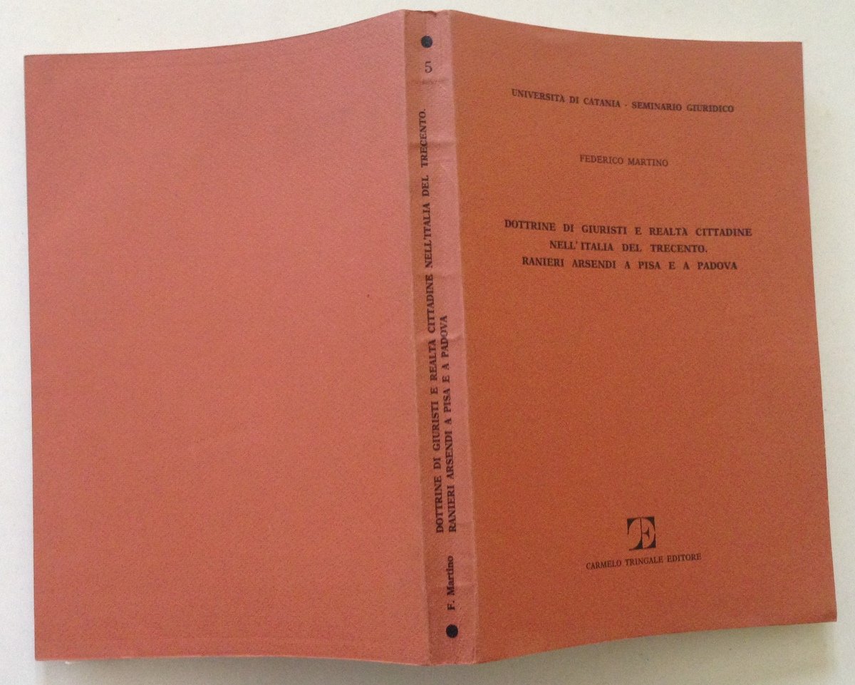 Federico Martino, Dottrine di giuristi e realtà cittadine nell'Italia del Trecento. Ranieri Arsendi a Pisa e a Padova Carmelo Tringale Editore, Catania 1984; cm. 23.5x15.5; pp. 319; dedica autografa dell'autore all'occhietto; br. ed. Condizioni di conservazione Esemplare in buono stato con leggere tracce d'uso. SETT138.L14100 MT