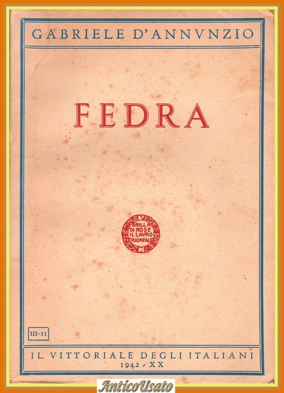 FEDRA di Gabriele D'Annunzio 1942 Il Vittoriale degli Italiani Libro