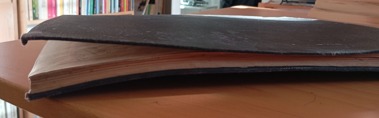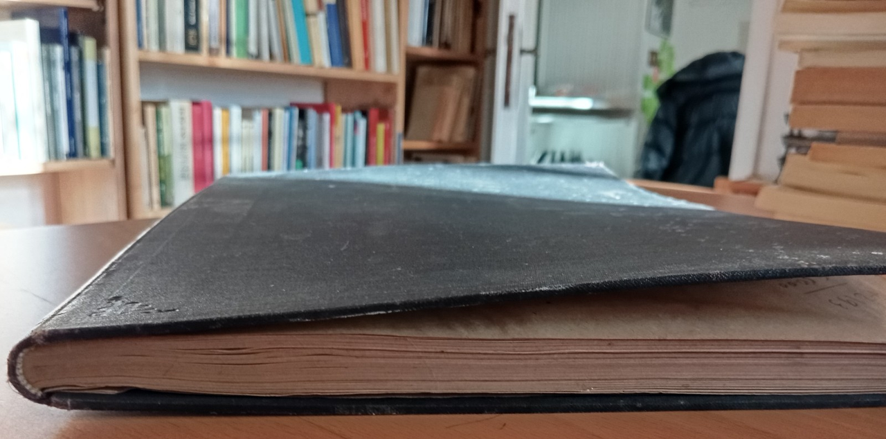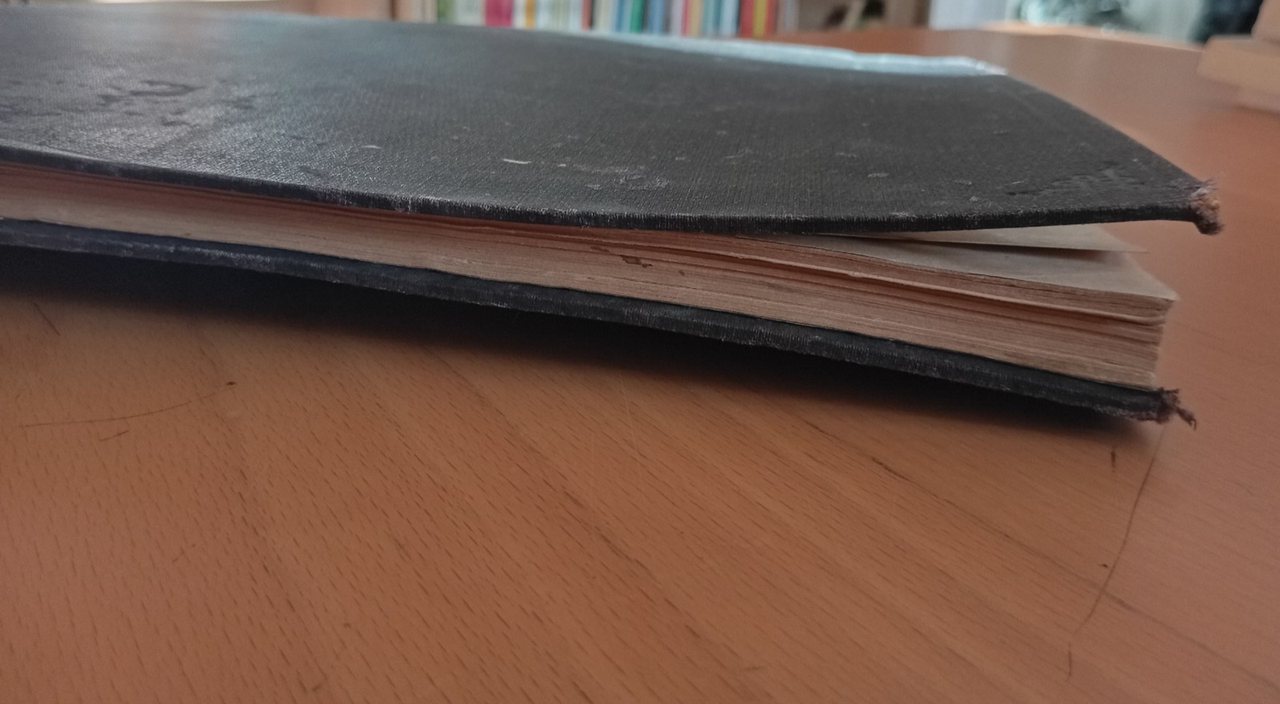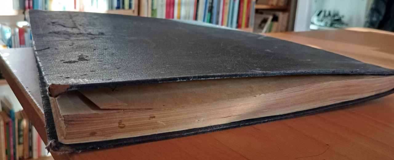 Rilegatura rigida macchiata e deformata, come da foto, internamente pagine ingiallite, come da foto