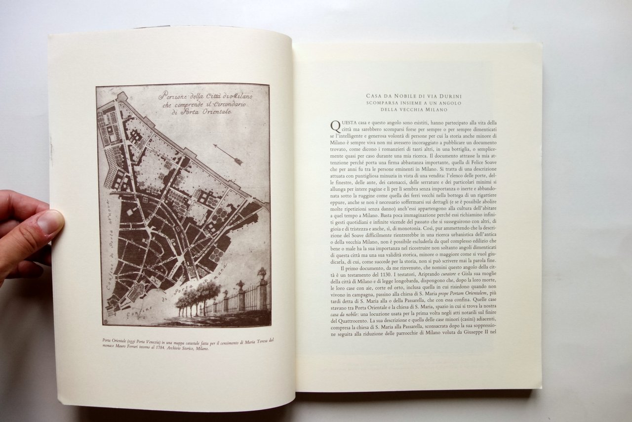 Descrizione e summa delli disegni della casa da nobile e casini annessi situati in P. O. nella Contrada del Durino alli n. 403, 418, 502, e della soppressa Chiesa della Passarella di ragione dell'Ill.mo Sig. D. Luigi Bertoglio Manoscritto di Felice Soave Milano, 1790 [.] Pomellato, Milano 1996; cm 30x22; pp. 192 con 10 ill. in b/n; cartoncino ed. con bandelle. Condizioni di conservazione Molto ben conservato con leggere tracce d'uso, brossura ed. con qualche lievissimo alone e brunitura, margine sup. della brossura ant. con un minimo taglietto. Interni ottimi. Edizione numerata. N/s 74. SETT226.L23824 N