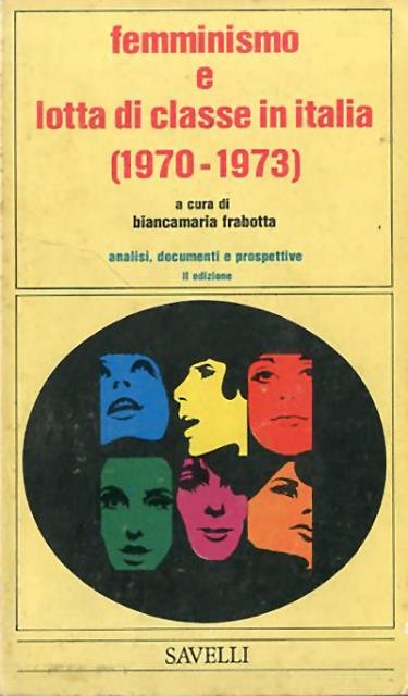 2. ed. 253 p. ; 18 x 11 cm. Cultura politica, 157. Quali sono stati i metodi di lotta, le forme organizzative, gli obiettivi perseguiti di gruppi femministi nel triennio che ha segnato la nascita e l'impetuoso sviluppo del femminismo italiano? Questo libro offre una risposta a tali interrogativi raccogliendo, secondo un indice tematico, documenti, interventi, volantini, slogan, canzoni nate dalle lotte e dalle riflessioni di quel fondamentale periodo. Brossura editoriale, coperta illustrata a colori in cartoncino flessibile plastificato lucido. Qualche segno del tempo alla coperta, ai tagli e alle pagine interne (ingiallimento della carta), per il resto esemplare integro. Codice libreria 9517.