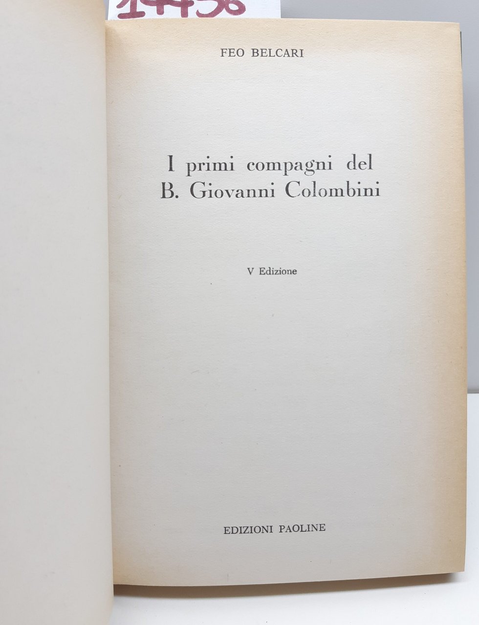 Feo Belcari I primi compagni del B. Giovanni Colombini 5° ed. Paoline 1962