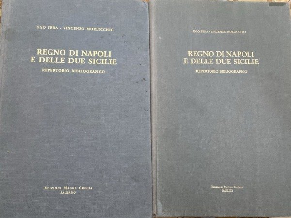 <p>Fera, Ugo Morlicchio, Vincenzo. Regno Di Napoli E Delle Due Sicilie. Repertorio Bibliografico Volume Primo E Volume Secondo Salerno, Edizioni Magna Grecia, 1987-1994. 2 voll. in 4, pp. 384, 450, tavv. f.t., leg. edit. tela con tit. dor. Indice analitico degli autori, dei nomi, dei luoghi e delle cose notevoli</p>, , <p> </p>, , <p>SCATOLA 30</p>,