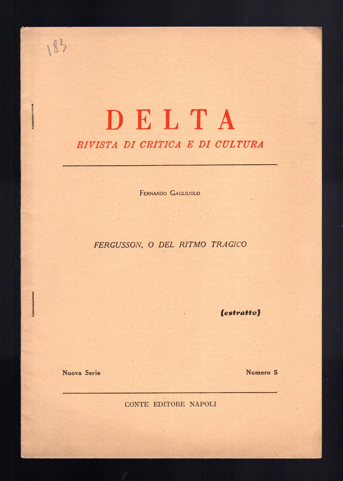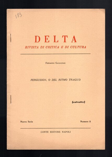 Opuscolo vintage. Estratto da Delta Nuova Serie n. 5. Segno di matita in copertina. Ordinario segno del tempo. Usura da scaffale