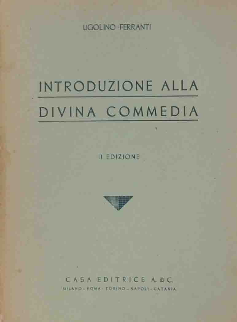 Ugolino Ferranti, Introduzione alla Divina Commedia, Casa Editrice A. e C., Milano 1948, seconda ed., pp. 94,cm 20, br. ed. Dorso restaurato, minime fioriture alla brossura, carta lievemente brunita, per il resto buona copia. Raro.