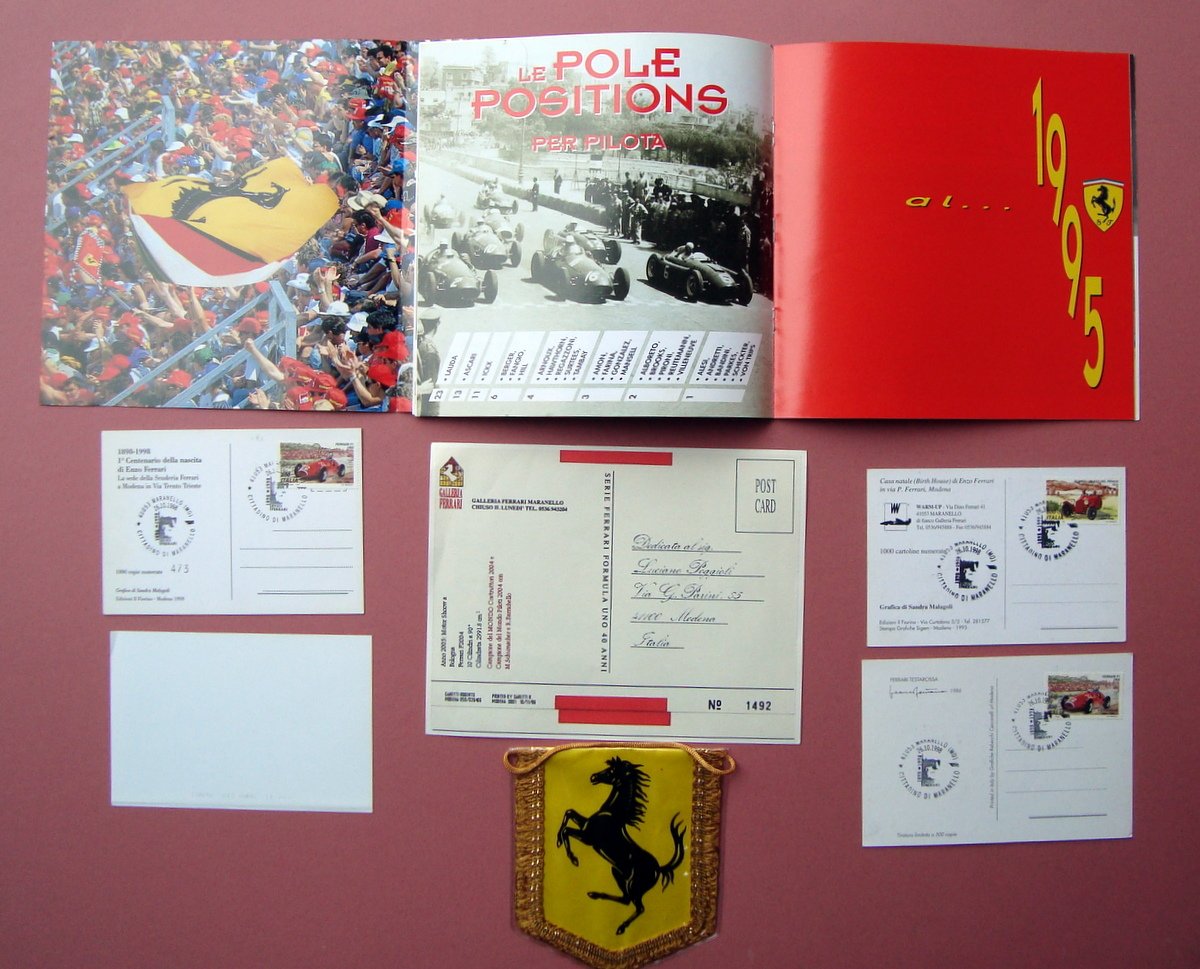 Ferrari curiosit‡ varie 1 fotografia 3 cartoline 1 distintivo 1 pieghevole .