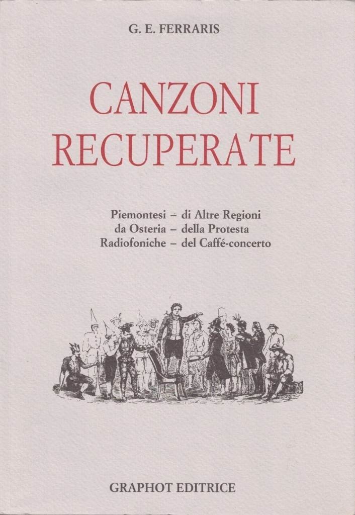 Gian Enrico Ferraris, Canzoni recuperate. Piemontesi – di altre Regioni – da Osteria – della Protesta – Radiofoniche – del Caffè-concerto, Graphot Editrice, Torino 2003, seconda ed., pp. 237, ill. b.n., cm 25, br. ed. In calce alla quarta di copertina, piccola etichetta adesiva di libreria. Perfetto. In stato di nuovo.