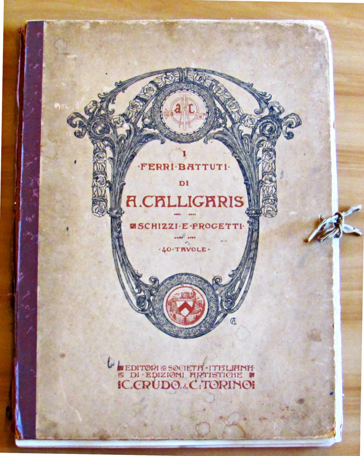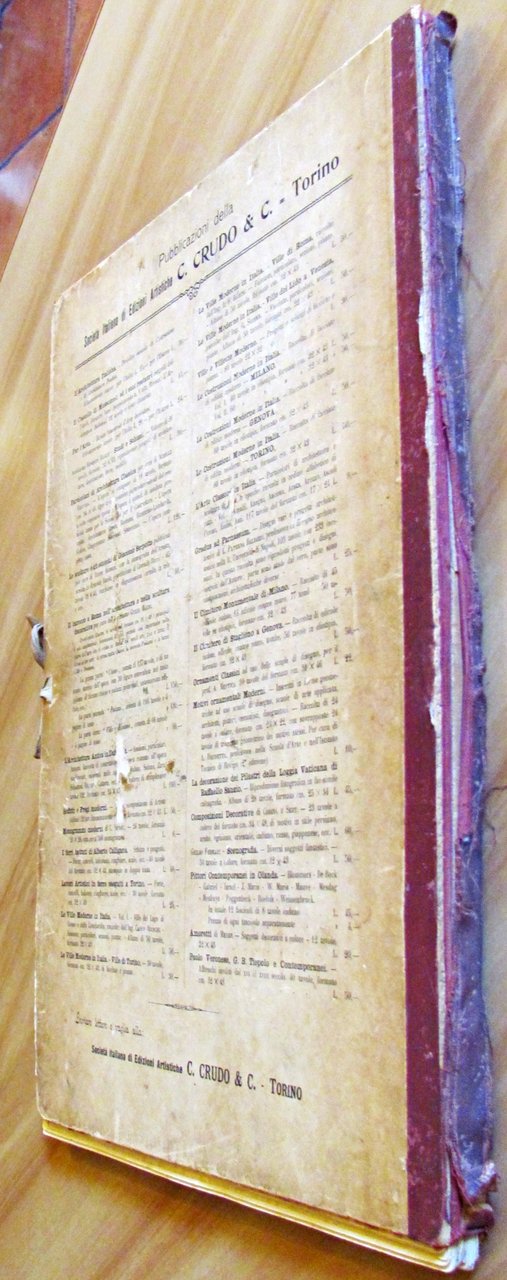 40 splendide tavole sciolte in b/n in stile Liberty. Società Italiana di Edizioni Artistiche Crudo & C. Torino, s.d. 1900 ca. Cartella editoriale con dorso in tela e laccio originale. Imperfezioni della tela alle cerniere esterne e al dorso, internamente integra. Lievi bruniture del tempo alle copertine. Peraltro tavole interne in Ottimo Stato. 32x44. BUONISSIMO STATO , Molto buono (Very Good)