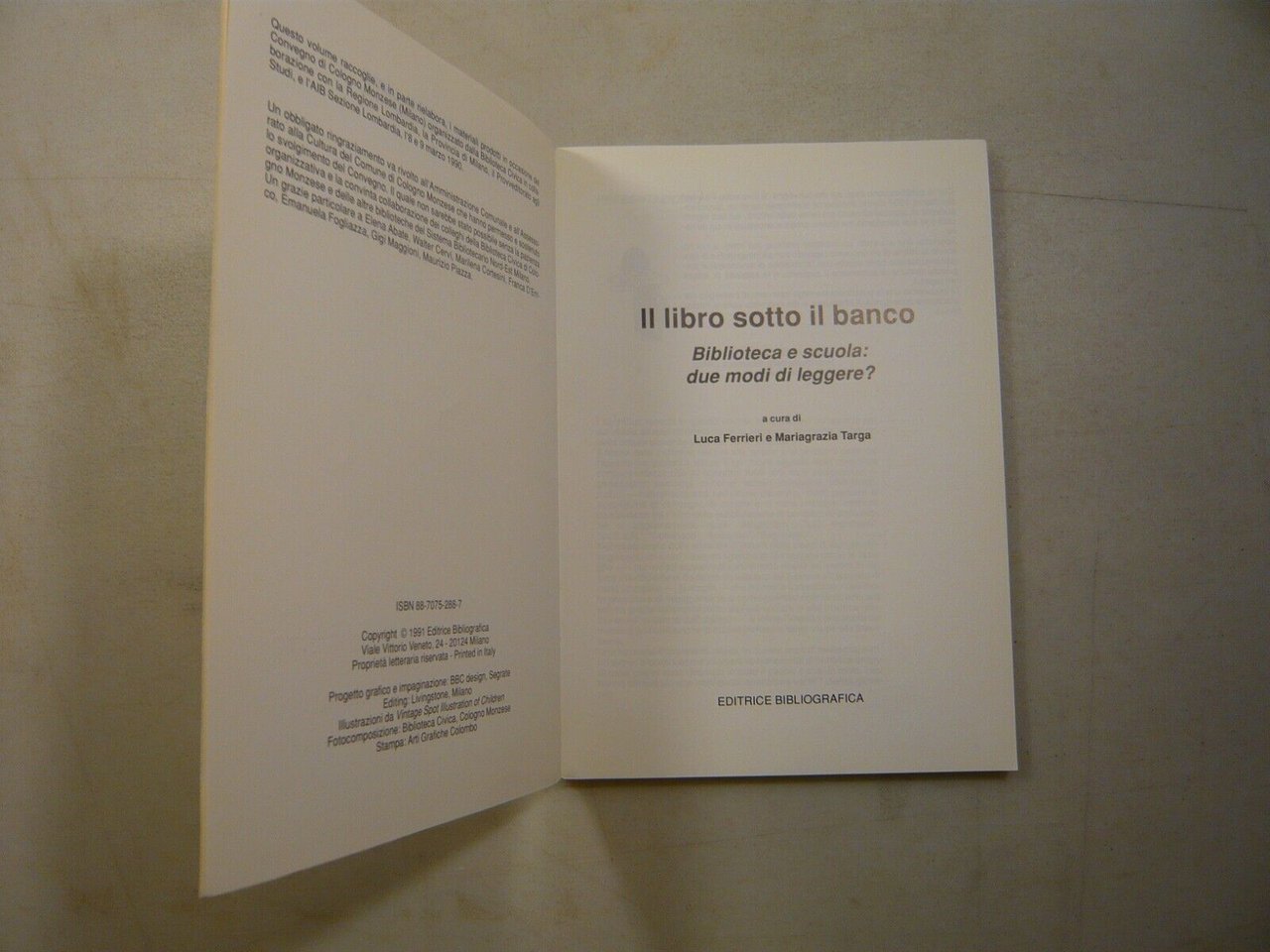 Ferrieri,Targa,IL LIBRO SOTTO IL BANCO,Ed.Bibliografica 1992[lettura,scuola