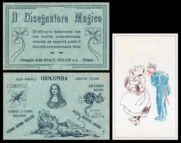 Ferro China Bisleri, Acqua Nocera Umbra, Diaz, Esanofele, Gioconda. Felicie Bisleri & C. Milano. Il disegnatore magico.