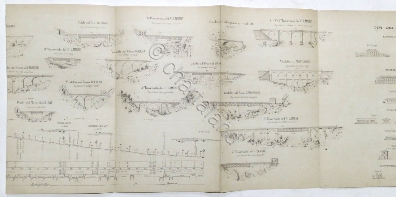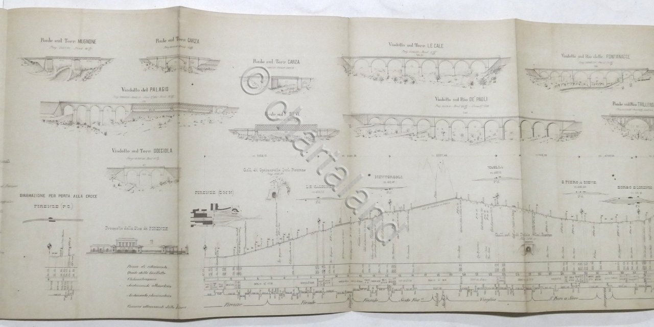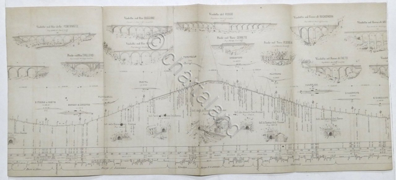 Ferrovia Firenze - Faenza: Planimetria e Profilo - fine '800