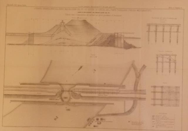 FERROVIA VOGHERA-BRESCIA. NUOVA INALVEAZIONE DEL PO ED OPERE DI DIFESA DEL PONTE TUBOLARE PRESSO MEZZANACORTI. Due Tavole illustrative tratte da "Giornale del Genio Civile".
