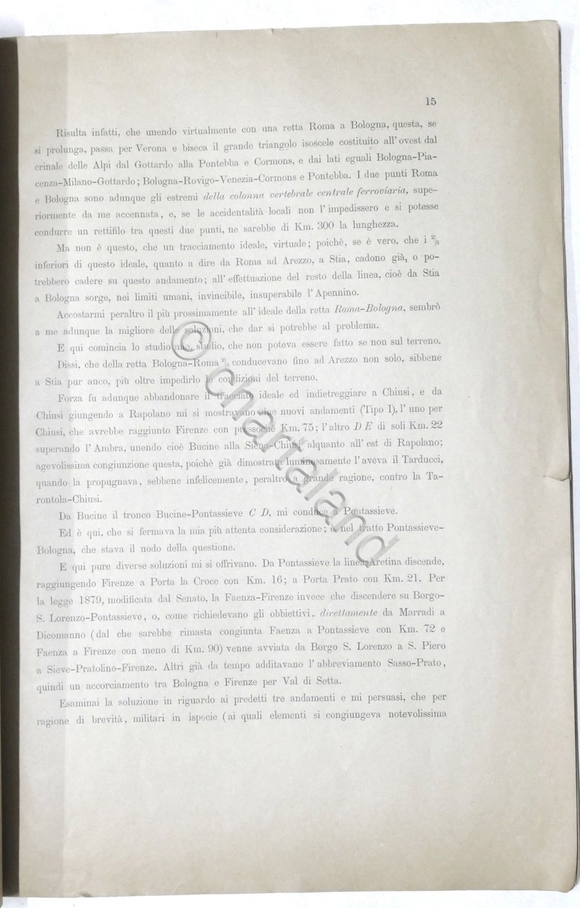 Ferrovie - La direttissima Bologna-Roma - Progetto dell' ing. A. Zannoni - 1888