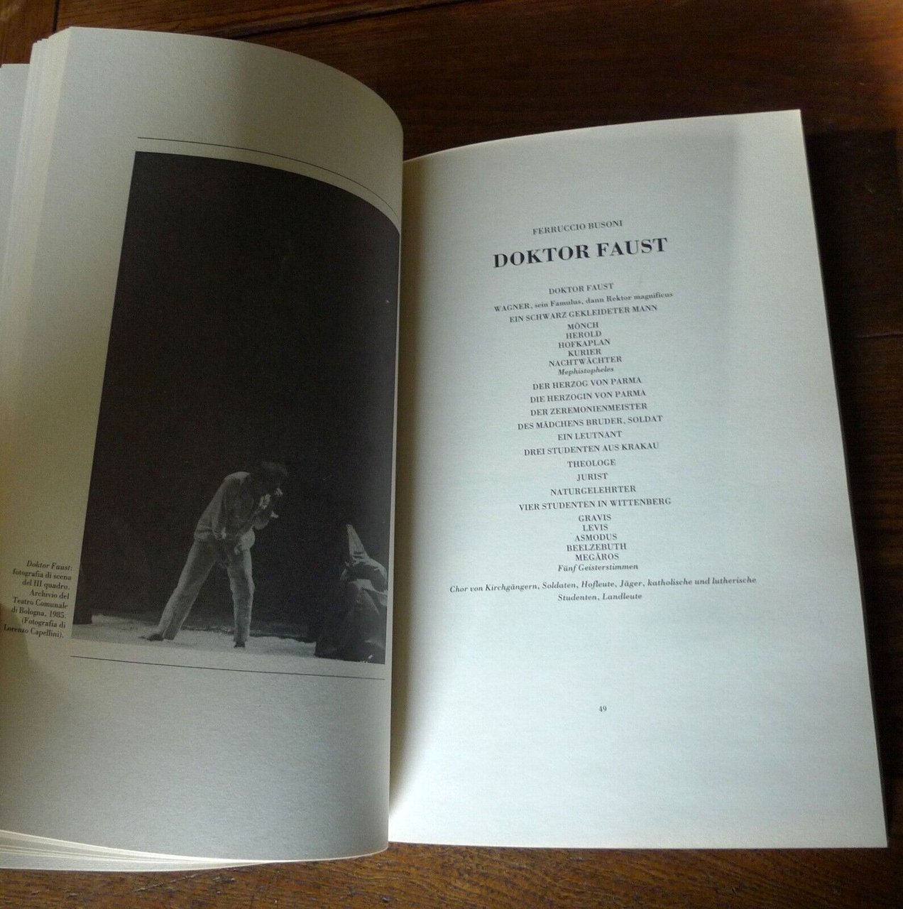 - FERRUCCIO BUSONI,DOKTOR FAUSTOpera in due preludi, un intermezzo e tre quadri.Libretto (in lingua originale) e musicadi Ferruccio Busoni.Edizioni del Teatro Comunale,dirette da Franco Varini, Bologna 1985,brossura, 27x18,5 cm., pp.126,illustrazioni in bianco e nero,contiene il libretto originale in tedescoe la traduzione italianaed alcuni testi critici,peso: g.500