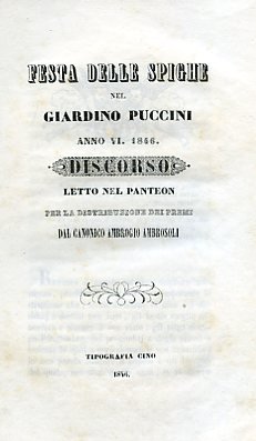 Festa delle spighe nel Giardino Puccini. Anno VII. 1846. Discorso letto nel Panteon per la distribuzione dei premi