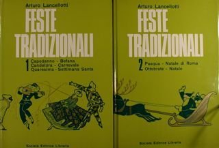 2 voll ril. in tela con sovr. e cust., cm 28x20, Vol. I: Capodanno, Befana, Candelora, Carnevale, Quaresima, Settimana Santa: pp 628 , 440 ill. quasi tutte b/n; Vol. II: Pasqua, Natale di Roma, , Le Ottobrate, Natale: pp 467, 328 ill. quasi tutte b/n. Ott. esempl.
