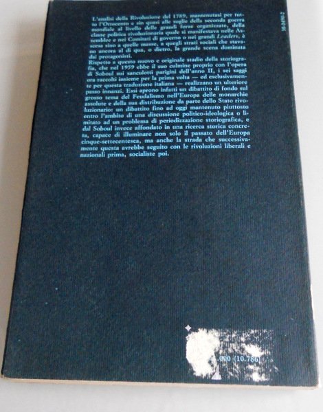 Soggetti: Storiografia, Storia moderna, Rivoluzione francese, Problemi, Critica, Interpretazione, Interpretazioni storiche, Illuminismo, Borghesia, Marxismo, Termidoro, Terrore, Giacobini, Comune, Parigi, Robespierre, Marat, Danton, Napoleone, Prelevamento feudale, Voltaire, Diderot, Privilegi, Ricchezza, Stato rivoluzionario, 1871, Storia comparata, Feudalesimo, Aristocrazia, Filosofia, Meslier, Karl Marx, Comunismo, Chiesa, Religione, Ideologie politiche, Sanculotti, Monarchie, Europa, Liberalismo, Periodizzazione, Feudalità, critica storica, Classici, French Revolution, études d'histoire révolutionnaire, Problèmes paysans de la Révolution, The Social Interpretation of the French Revolution, Alfred Cobban, Libri Vintage fuori catalogo rari, Une discussion historique du féodalisme au capitalisme: contribution a propos de la Révolution Française, Féodalité, Prélèvement féodal, Bray, Ancien Régime, Aristocrazia, Plebe, Popolo, Mathiez, Rivoluzioni, Rivoluzionari, Nobiltà, Assemblea costituente, Costituzione, Libertà, Uguaglianza, Cittadinanza, Diritti sociali, economici, Georges Lefebvre, Capitalismo, Jaurès, Convenzione, Proprietà, Francia, Luglio, Lingua, Masse, Mercantile, Moniteur, Movimenti, Parigi, Patrioti, Parigini, Contadini, Politica, Produzione, Relazioni internazionali, regionali Sans-culottes, Società sociale, Lotta di classe, Proletariato, Aristocrazia, Salari, Donne lavoratrici, Seigneuriaux, Seigneurs, Lois, Troisième République, François Furet, Tocqueville, Travaux, Contradictions sociales et politiques, Marxist interpretation, Anglo-Saxon revisionists, William Doyle, Napoleonic Age, Revisionismo storico, Jean-Antoine Chaptal, Surplus, Agricultural, Babeuf, Bankers, Banque, Bergeron, Clavière, Commercial, Comninel, Cotton manufacturing, Crisis, Culture, Directoire, Directory, Dirigisme, Ernest Labrousse, Expansion, Factories, Girondin, Historians, Idea, Ideology, Jean-Antoine Chaptal, Industrie, Land, Lemarchand, Livesey, Maîtres de forges, Merchants, Middle class, Moriceau, Naissance, Napoleonic, Négociants, Nobles, Peasants, Physiocrats, Revue, Roederer, Role, Sidérurgique, Subsistence, Surplus, Value, Workers, Woronoff, XVIIIe siècle, Historiography, Modern History, French Revolution, Issues, Criticism, Interpretation, Historical Interpretations, Enlightenment, Bourgeoisie, Thermidor, Terror, Jacobins, Commune, Paris, Robespierre, Feudal Levy, Privileges, Wealth, Revolutionary State, Comparative History, Feudalism, Aristocracy, Philosophy, Communism, Church, Religion, Political ideologies, Sans-culottes, Monarchies, Europe, Liberalism, Periodization, Feudality, historical criticism, Classics, Plebs, People, Revolutions, Revolutionaries, Nobility, Constituent assembly, Constitution, Liberty, Equality, Citizenship, Rights social, economic, Capitalism, Convention, Property, France, July, Language, Masses, Merchant, Movements, Paris, Patriots, Parisians, Peasants, Politics, Manufacturing, International relations, regional Social society, Class struggle, Proletariat, Aristocracy, Wages, Working women, Historical revisionism