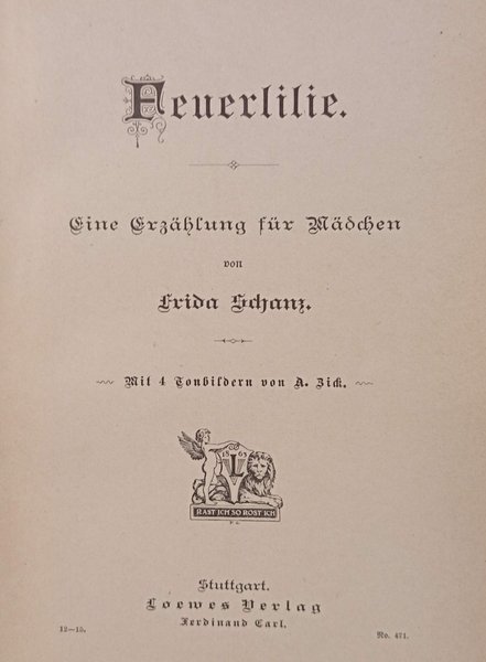Copertina Rigida<BR>Condizioni Molto buone<BR>Lingua Tedesco<BR>Edizione Cartonata. 152 pp. In 8°. Decorativo con foto illustrata a colori incorporati. Con 4 immagini audio di A. Zick. legatura in piena tela con disegno originale a colori e fregi in oro a incorniciare il ritratto delle due protagoniste 4 tavole in bianco e nero e fuori testo.