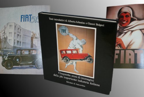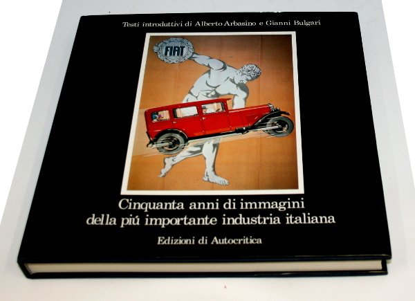 In 4to (cm 27x27) legatura in tela pag. 288 con 226 tav. a colori e b/n di manifesti pubblicitari. Testo bilingue (italiano e inglese). --- Attento esame del messaggio pubblicitario FIAT. Testi introduttivi di Alberto Arbasino e Gianni Bulgari.
