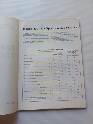 FIAT tutti modelli 124 USA 1970 manuale officina car. tecniche dati riparazione