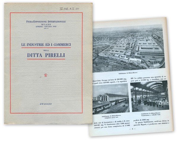 Fiera Esposizione Internazionale Milano aprile - giugno 1928. Le Industrie ed i commerci della Ditta Pirelli. Pirelli ai visitatori della Fiera - Esposizione Internazionale di Milano aprile - giugno 1928.